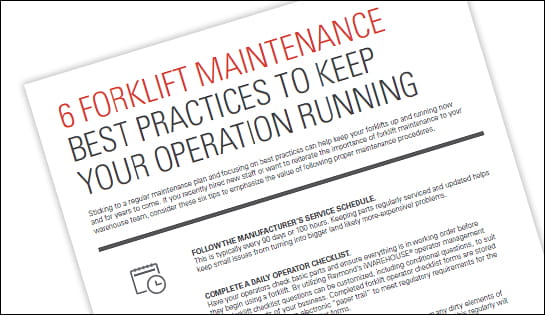 Learn more by reading Raymond’s Quick Tips on 6 Forklift Maintenance Best Practices to Keep Your Operation Running